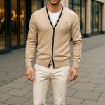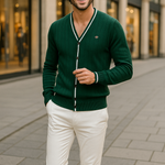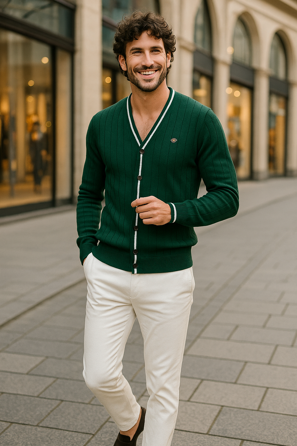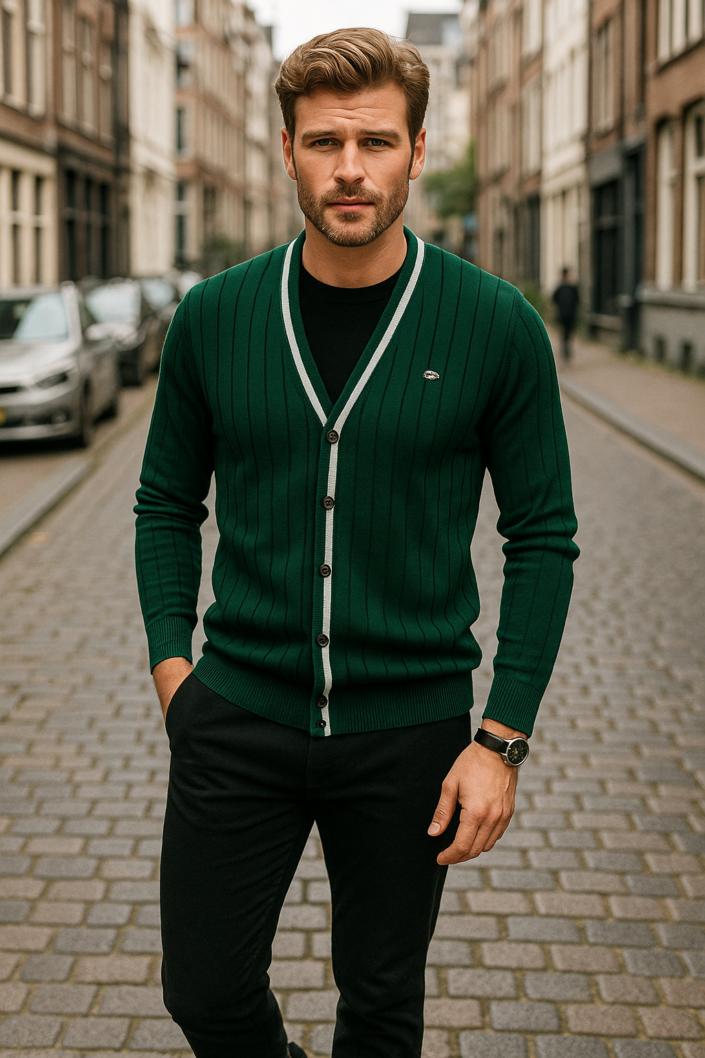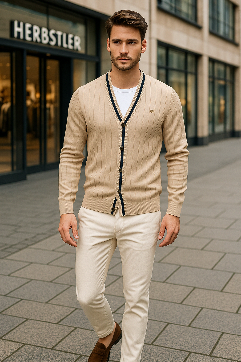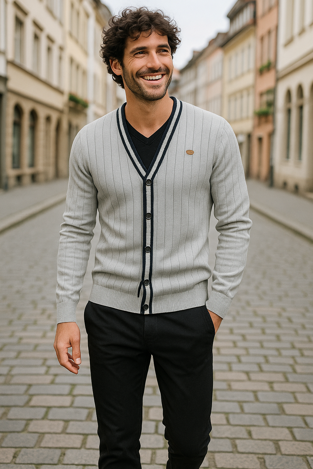 Alen Elegantni Kardigan s Prugama je vremenska elegancija za svaku priliku, inspiriran sofisticiranošću i slobodom hrvatskog muškarca koji voli osjećaj rafiniranosti u svakodnevici – poput ležernih izleta ili polu-formalnih događaja gdje se suptilni uzorak pruga i kontrastni rubovi susreću s visokokvalitetnim pamukom. Mekan, izdržljiv i ugodan na koži tijekom cijelog dana, ovaj kardigan dodaje dašak klase svakoj odjeći – svestran za slojevito nošenje, otporan na habanje i savršen za prelazne sezone.