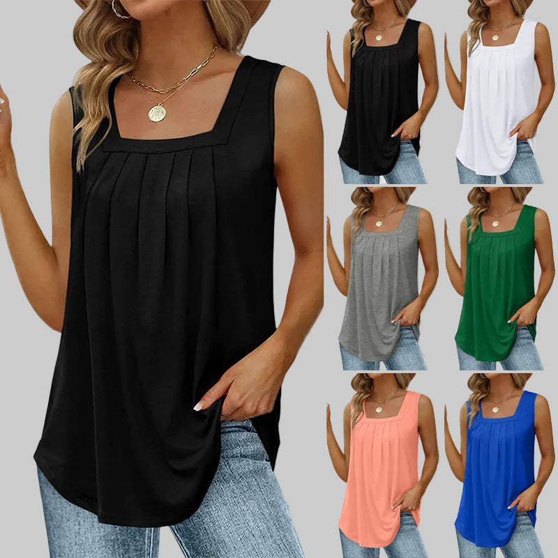 Damira je chic bezrukavni top s kvadratnim izrezom za žene koje žele podići svaku odjeću na višu razinu – savršen za proljetne, ljetne i jesenske dane, od plaže i opuštenih izleta do posla ili večernjih druženja s prijateljicama uz jadransku obalu. S prednjim plisiranim naborima koji laskavo padaju i oblikovanim donjim rubom, ovaj top prikriva trbuh, ističe prirodnu formu i odgovara svim tipovima tijela (uključujući trudnice), inspiriran hrvatskim mediteranskim načinom života punim topline, elegancije i slobode.