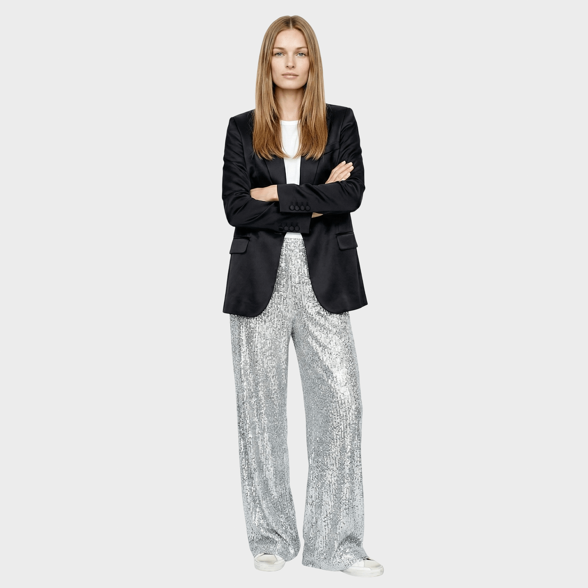 ✨ Svestrani sjaj: Lako se kombiniraju s elegantnim svilenim topovima ili bazičnim komadima za "urban chic" efekt.
